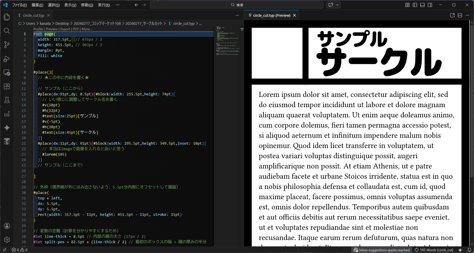 コミケ(C108)で使えるサークルカットの非公式Typstテンプレート